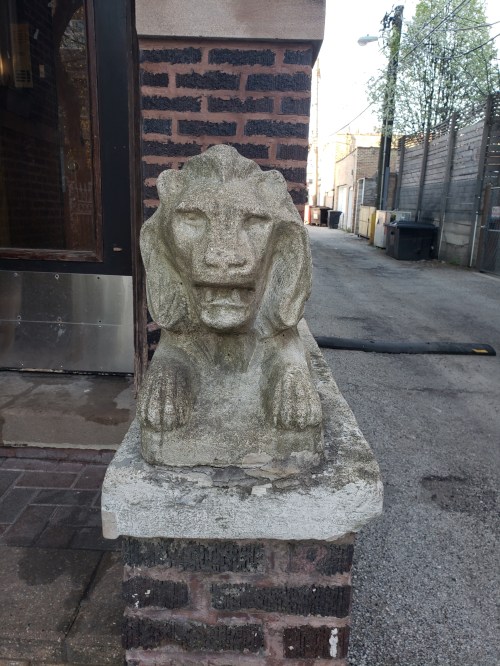 One of many lions stationed outside Chicago homes.